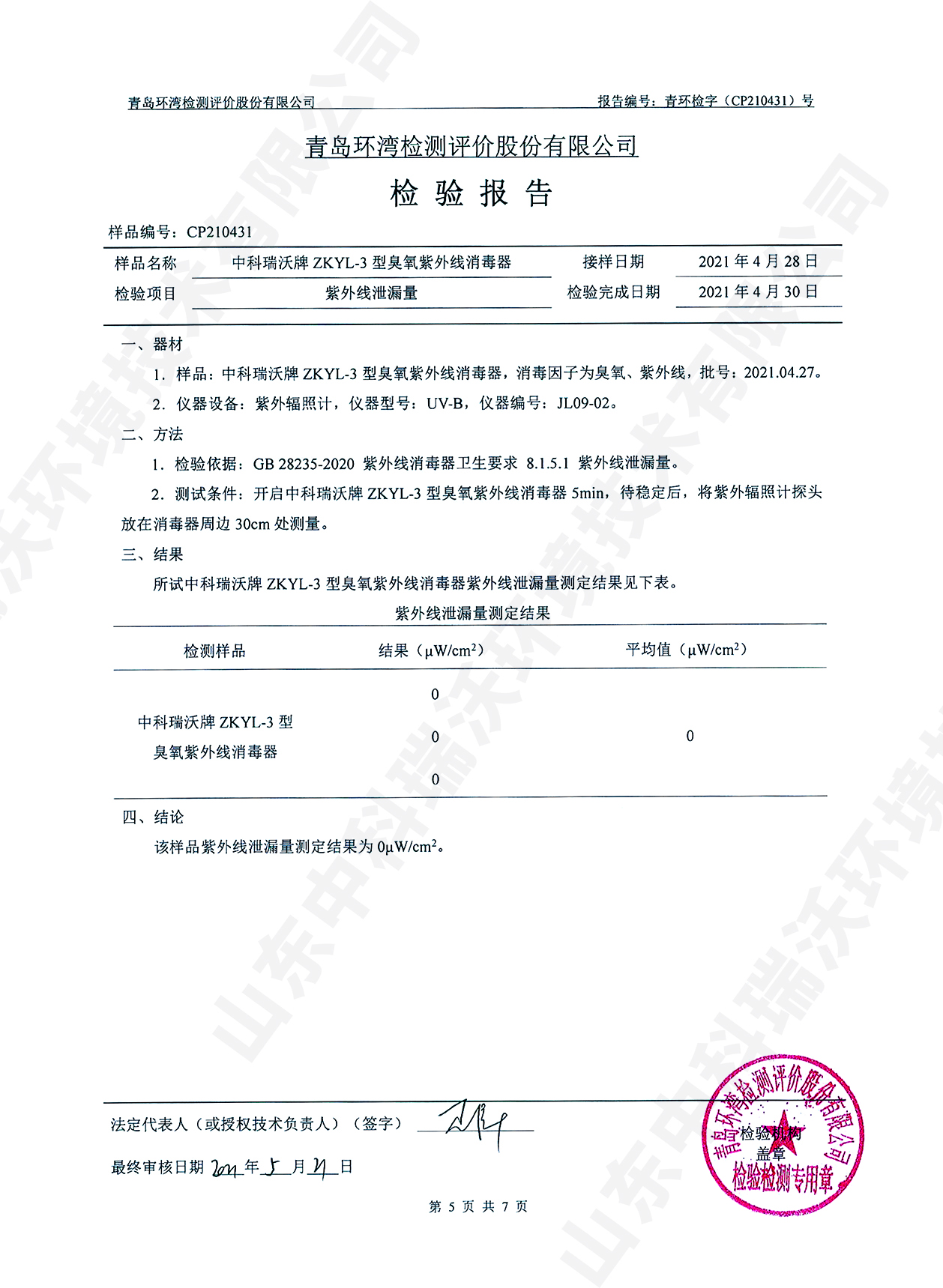 醫(yī)療污水處理設(shè)備檢測報告~臭氧+紫外線消毒