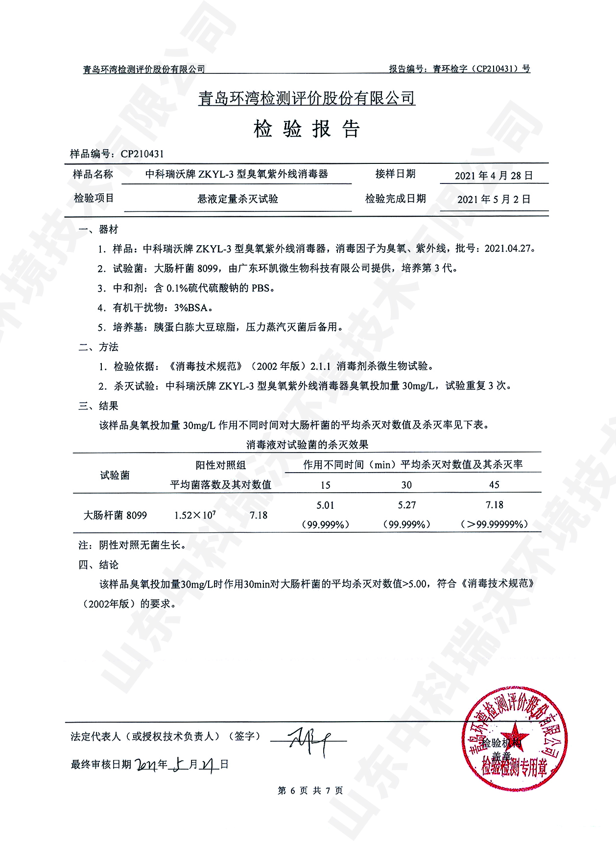 醫(yī)療污水處理設(shè)備檢測報告~臭氧消毒