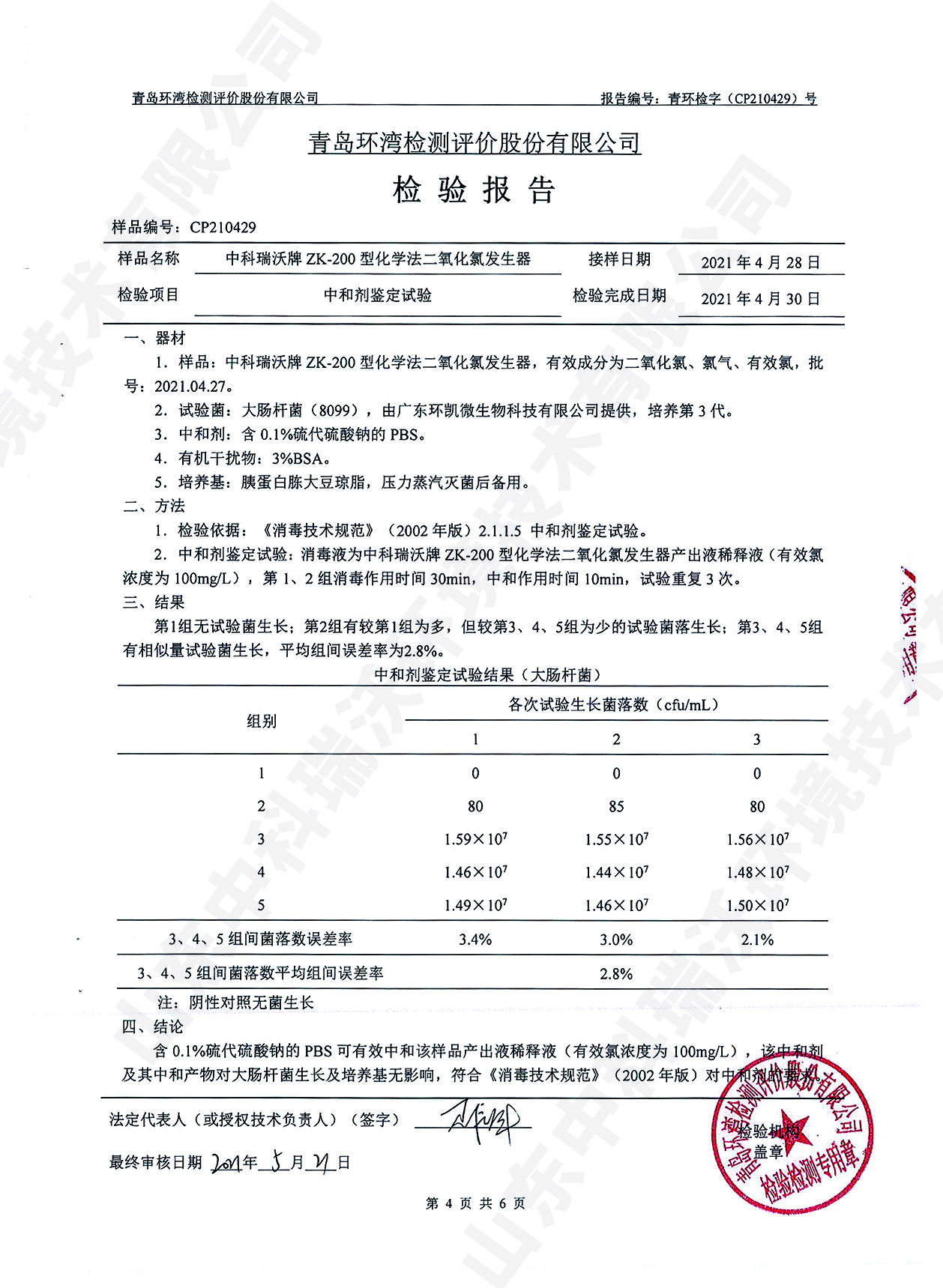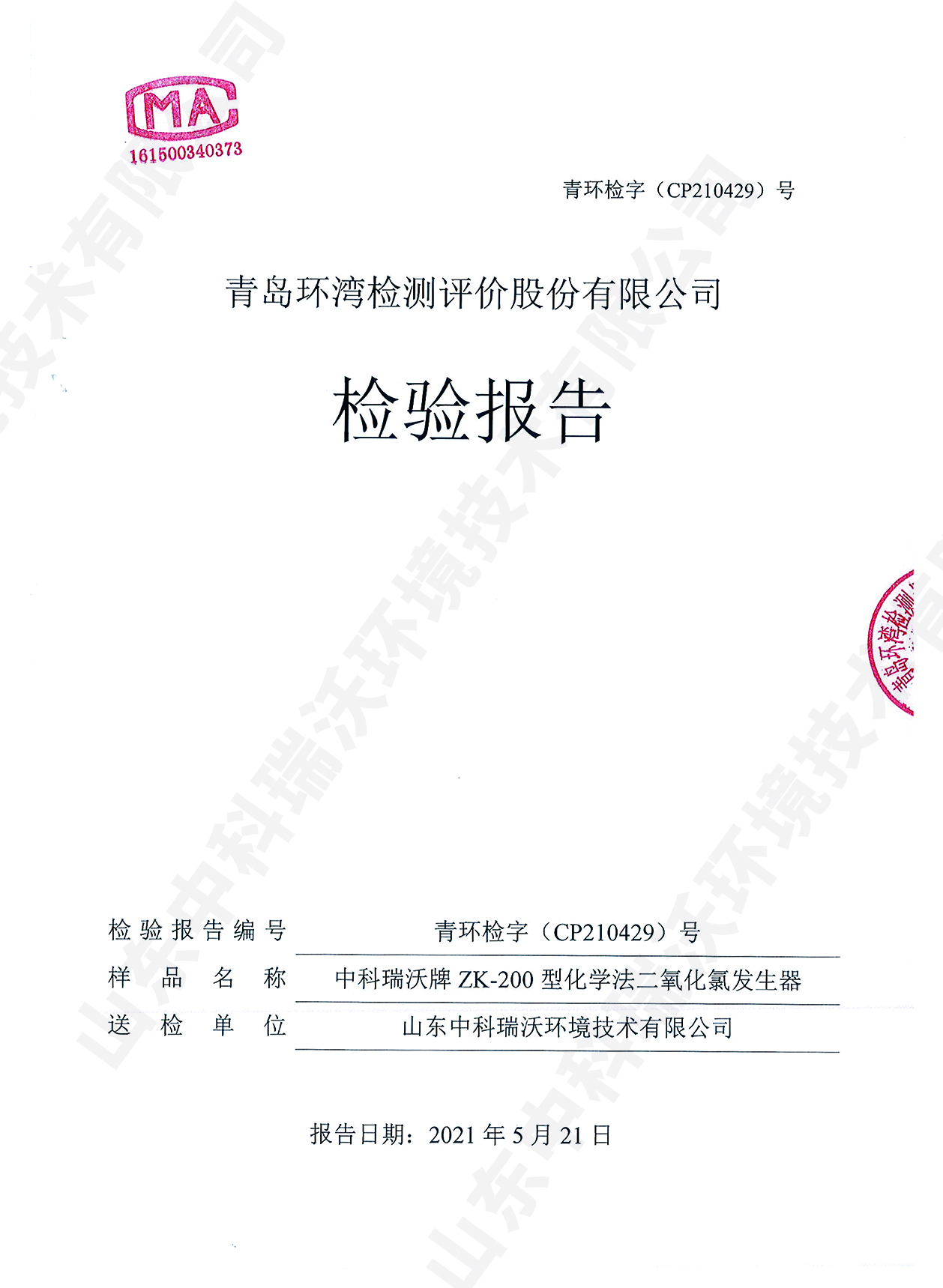 醫(yī)療污水處理設備檢測報告~二氧化氯消毒