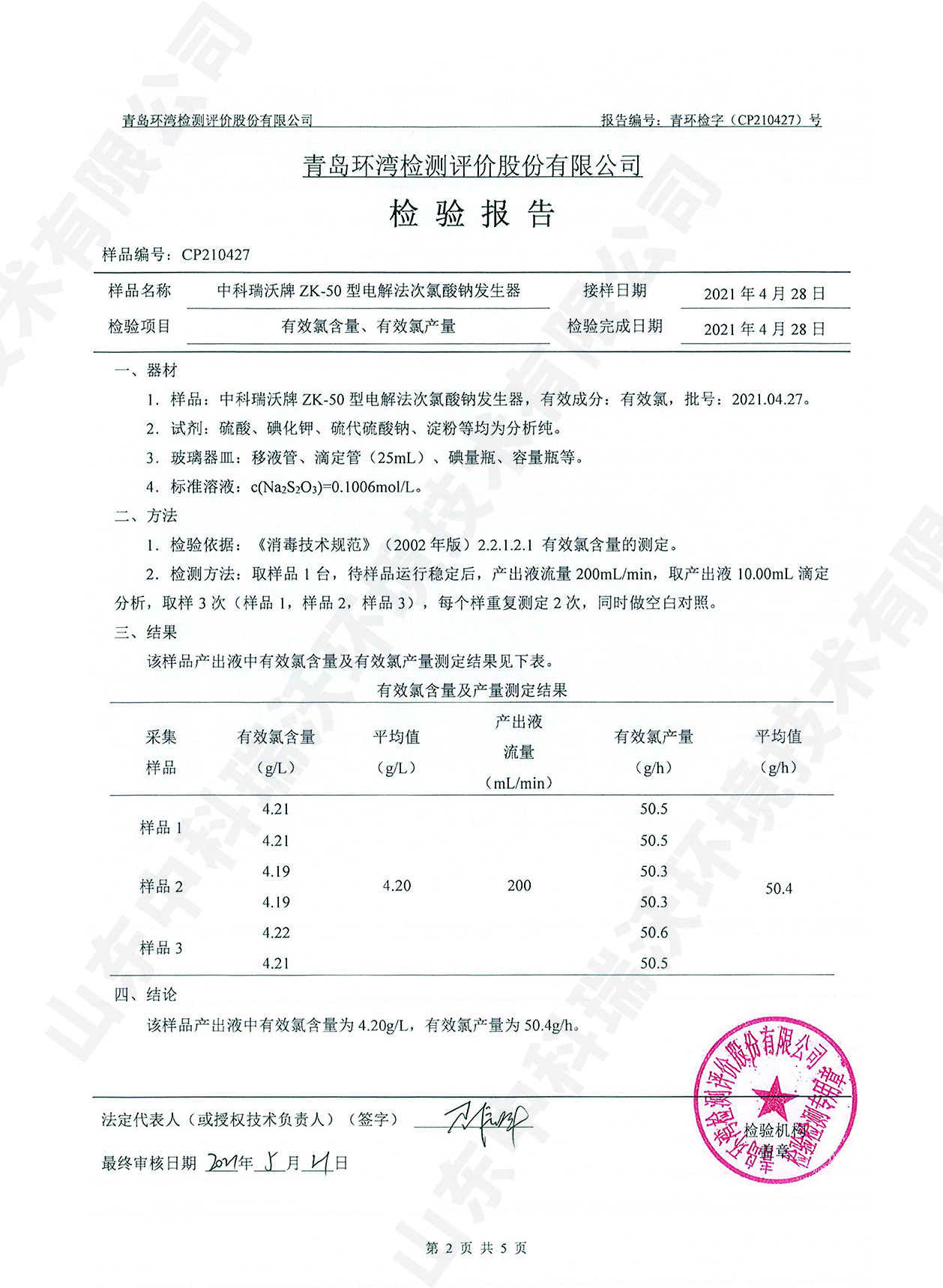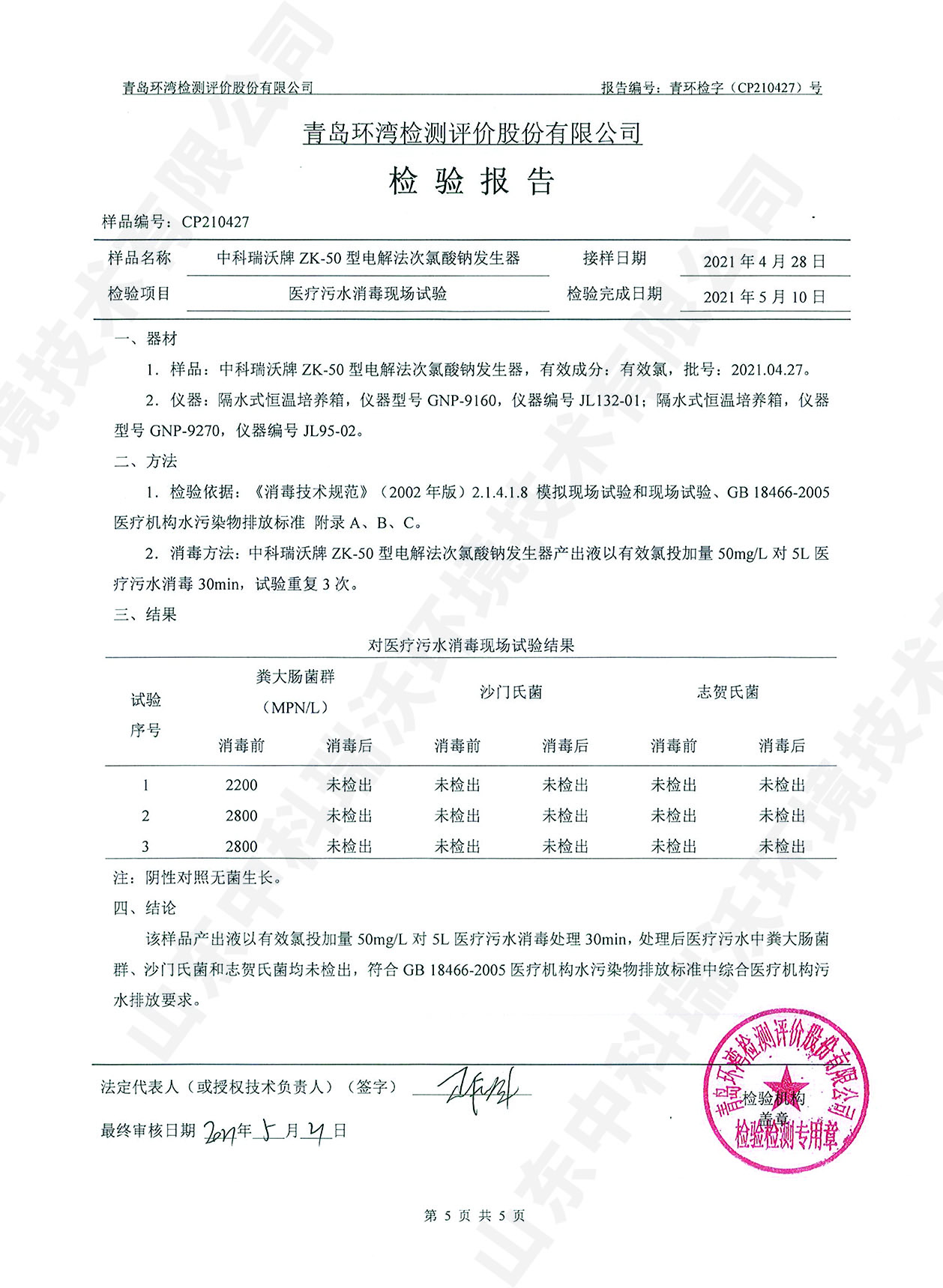 醫(yī)療污水處理設(shè)備檢測(cè)報(bào)告~次氯酸鈉消毒