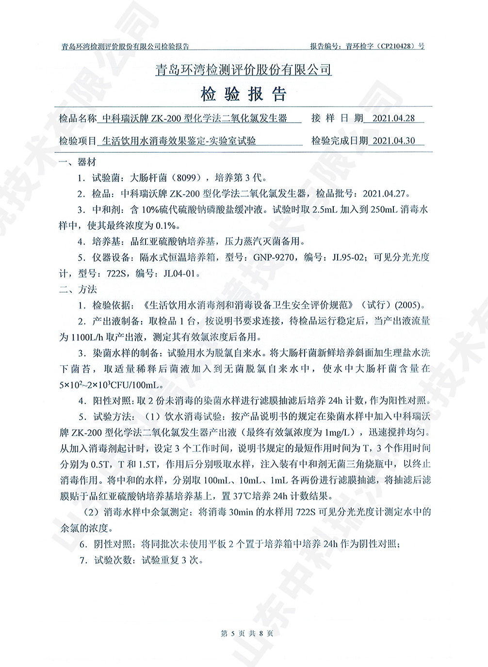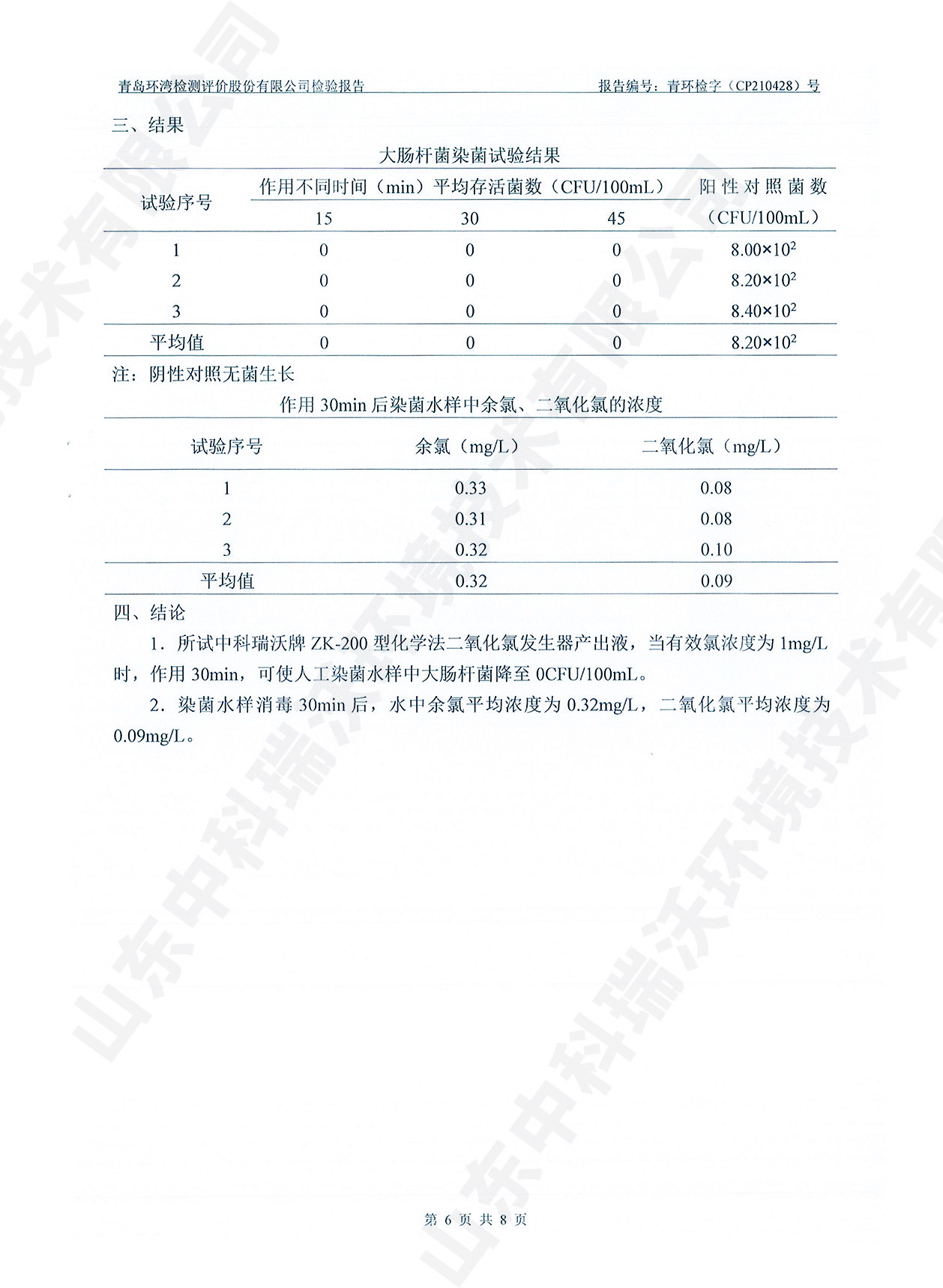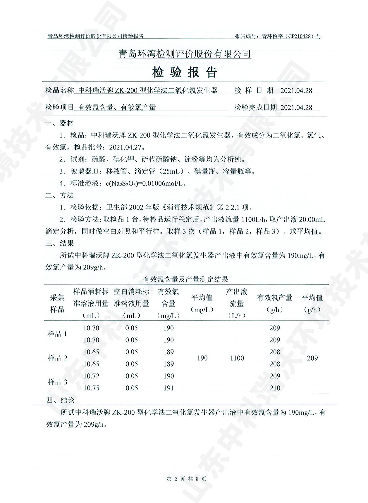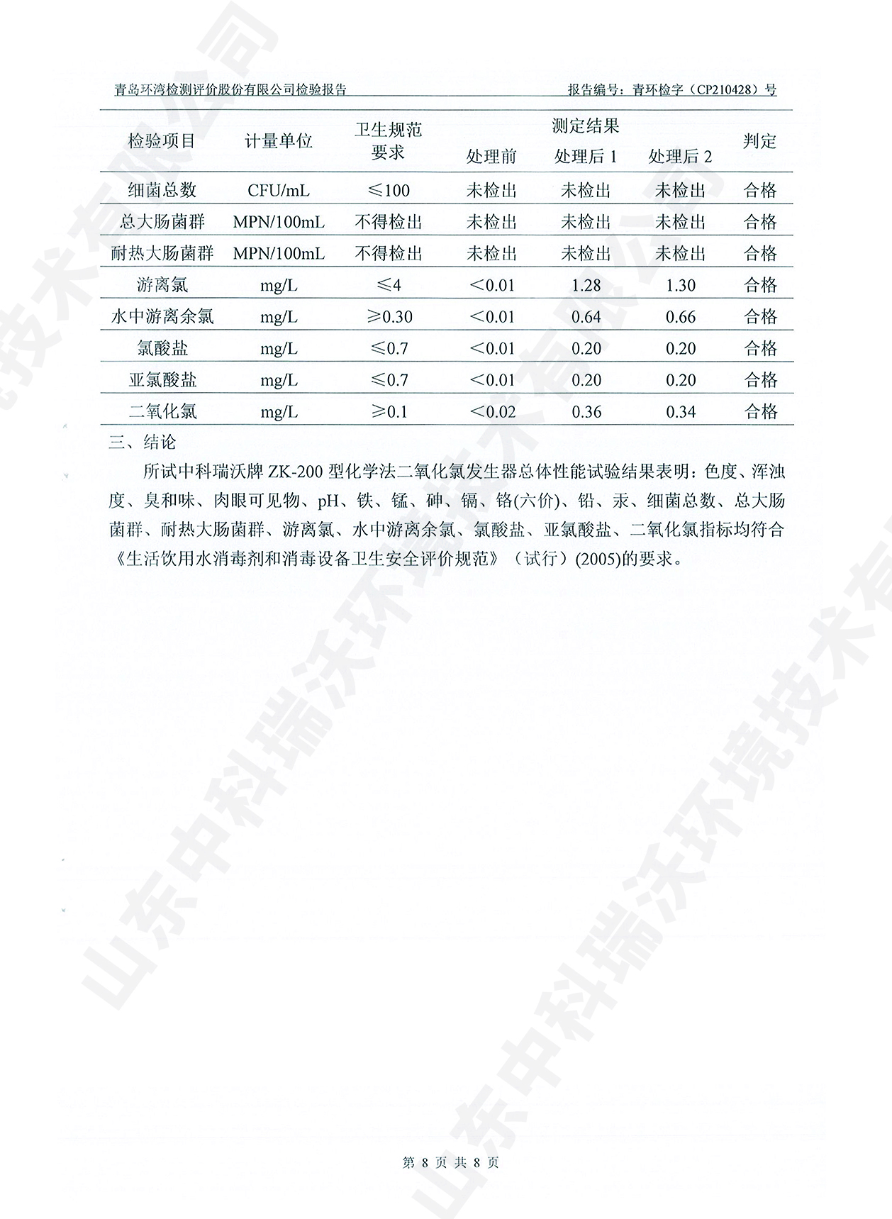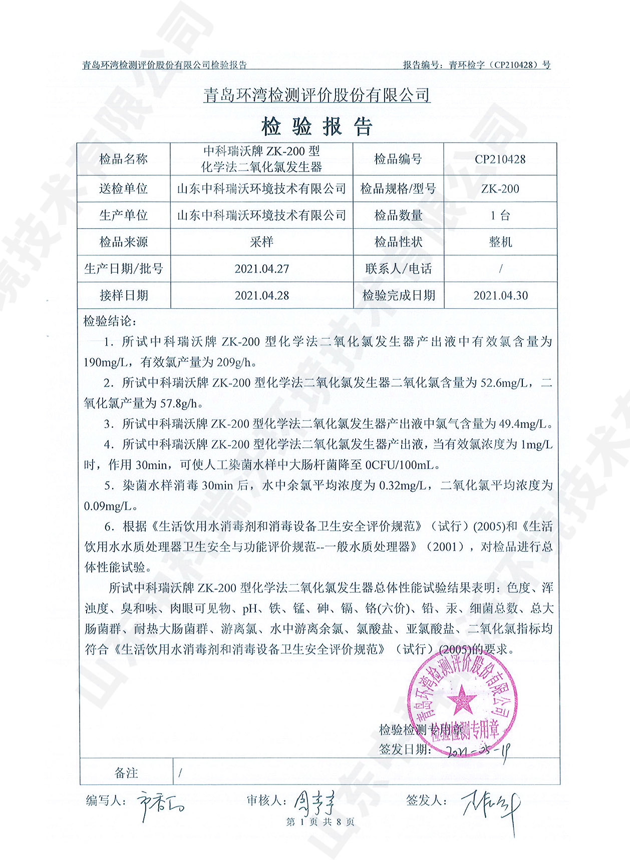 飲水消毒設(shè)備檢測(cè)報(bào)告~二氧化氯消毒